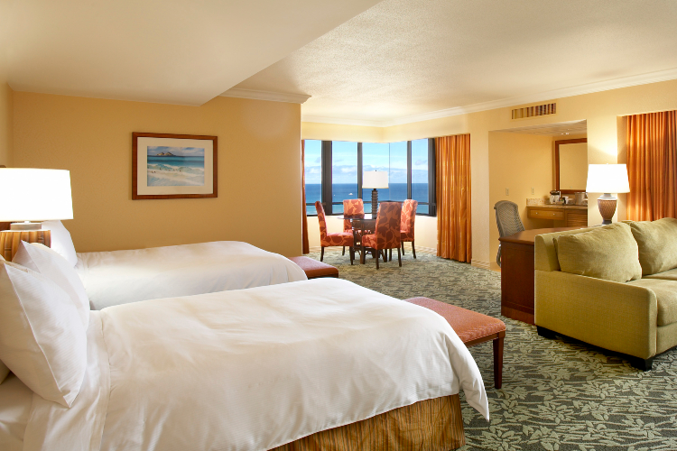 ダイヤモンドヘッド・タワー:ヒルトン1広い客室です。またリーズナブルに利用できるのでファミリー層にも人気ですよ。